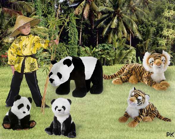 Asien Plüschtier Panda, Plüschtier sibirischer Tiger |