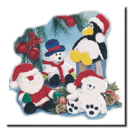 Weihnachtsteddybären, Plüschtiere wie Eisbären und Pinguine mit Mützen und Schals, Plüschelche, Schneemänner, Schneehasen, Rentiere, Weihnachtsgans und vieles mehr