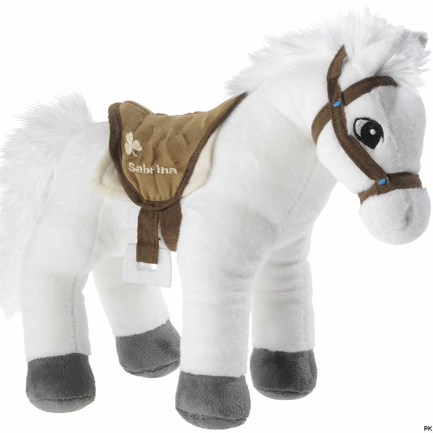 Das Plüsch Pferd Sabrina ist aus hochwertig verarbeitetem, kurzem Softwool-Material gefertigt. Das Plüschtier Pferd Sabrina hat eine weiße Mähne und große, gestickte Augen. Sattel und Zaumzeug des Plüschpferds Sabrina sind bestickt. Das Kuscheltier Pferd Sabrina ist kuschelweich gefüllt.