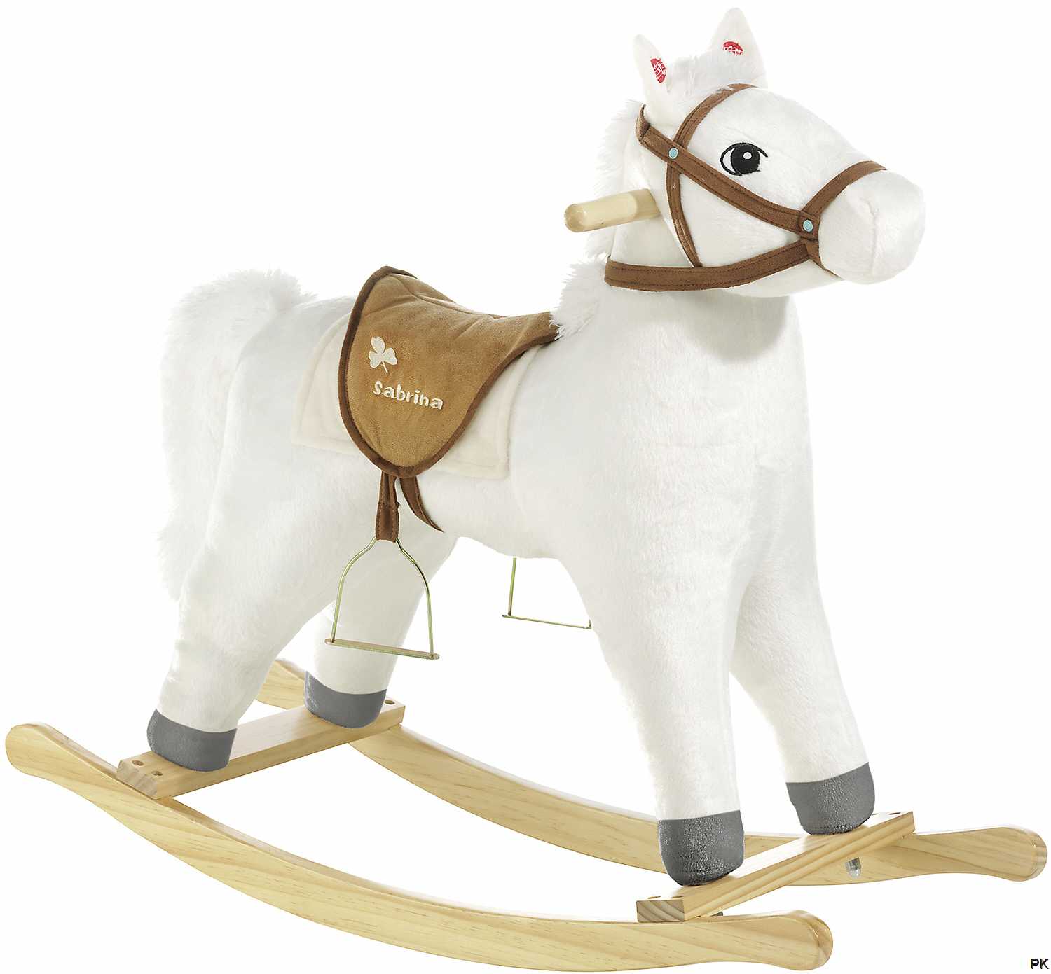 Das Bibi & Tina Schaukelpferd "Sabrina" ist aus strapazierbarem Plüschmaterial gefertigt. Das Bibi & Tina Schaukelpferd "Sabrina" wird mit Zaumzeug, wunderschönem besticktem Sattel und Steigbügel geliefert. Mit einer Tragkraft von 100 kg ist es robust verarbeitet und bestens zum Reiten und Spielen geeignet. Es hat außerdem einen Soundchip mit Pferdegeräusch. Die Holzkufen sind aus nachhaltigem FSC Holz gefertigt.