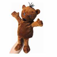 Die Plüsch Handspielpuppe aus Janosch, "Kleiner Bär" ist aus hochwertigem, braunem Softwool-Plüsch gefertigt und innen gefüttert. Die Plüschhandpuppe ist kuschlig weich gefüllt und hat gestickte, blaue Augen.