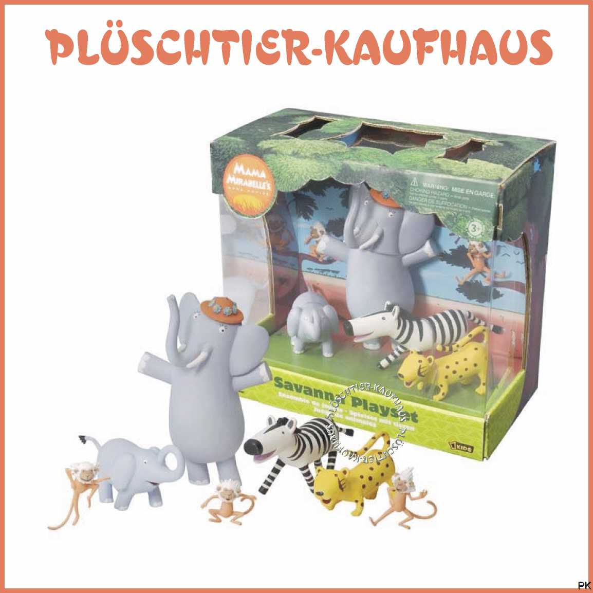 Mama Mirabelles Spielfiguren Set aus Kunststoff,bestehend aus 7 Figuren:Mama Mirabelle's, Elefantenbaby Max, Zebra Karla, Gepard Bo und den 3 Affenbrüdern Chip, Flip und KipOriginal Lizenzware, EU/ Übersee-Produkt