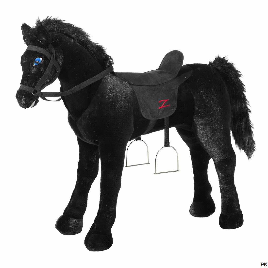 Das Reitpferd "Zorro" wird mit Zaumzeug, wunderschönem besticktem Sattel und Steigbügel geliefert.