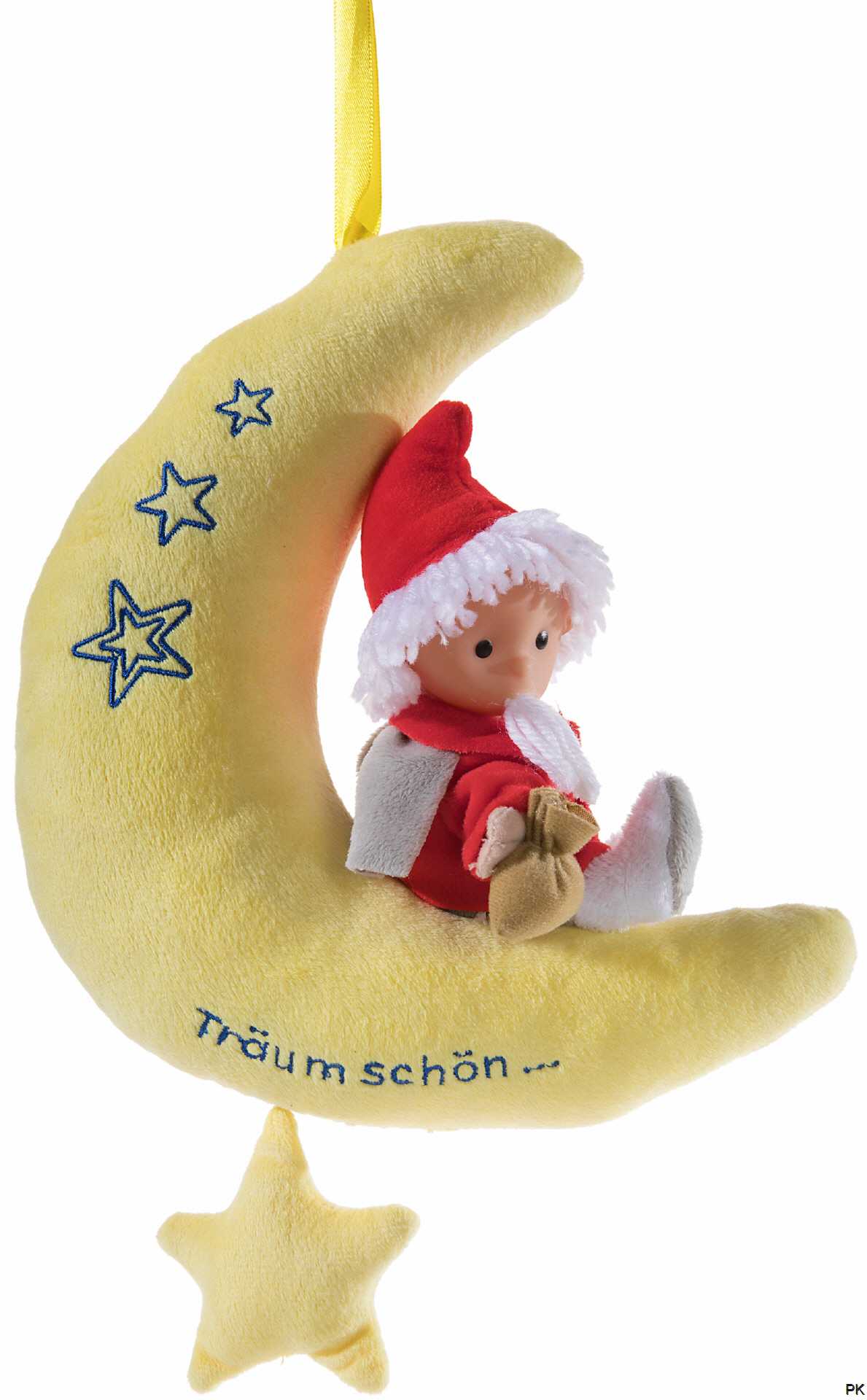 Farbe: gelber Mond mit roter Sandmännchen Spieluhr-Puppe