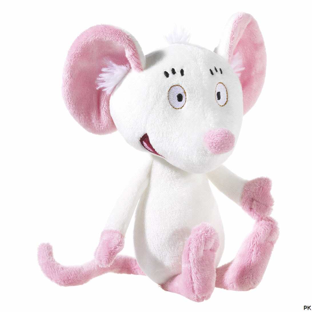 Die Plüschfigur "kleine Tilda Apfelkern" hat ein gesticktes Gesicht und lustige kleine Haarbüschel in den Ohren. Das Material ist aus hochwertig verarbeitetem, kuschelweichem Softwoolplüsch verarbeitet, in den Farben holunderblütenweiss und pink.