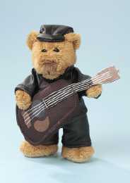 Teddybär Musiker mit Gitarre und Lederanzug aus Nylongewebe.