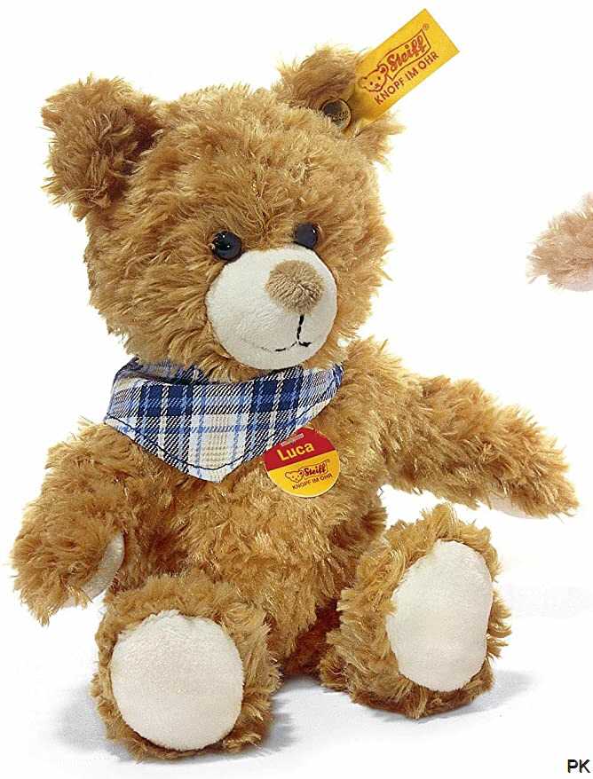 24 cm großTeddybär mit liebevollem Gesicht und treuem Blickaus hoch wertigem weichen Material gefertigt und superweich gefülltwaschbar bei 30 °ab 3 JahrenOriginal Steiff-Qualität mit "Knopf im Ohr"Farbe: gold