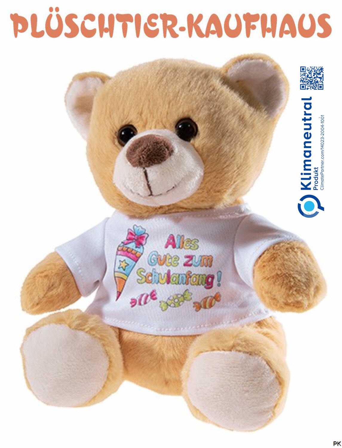 Plüschtier Schulanfang mit bedrucktem T-Shirt für die Schultüte