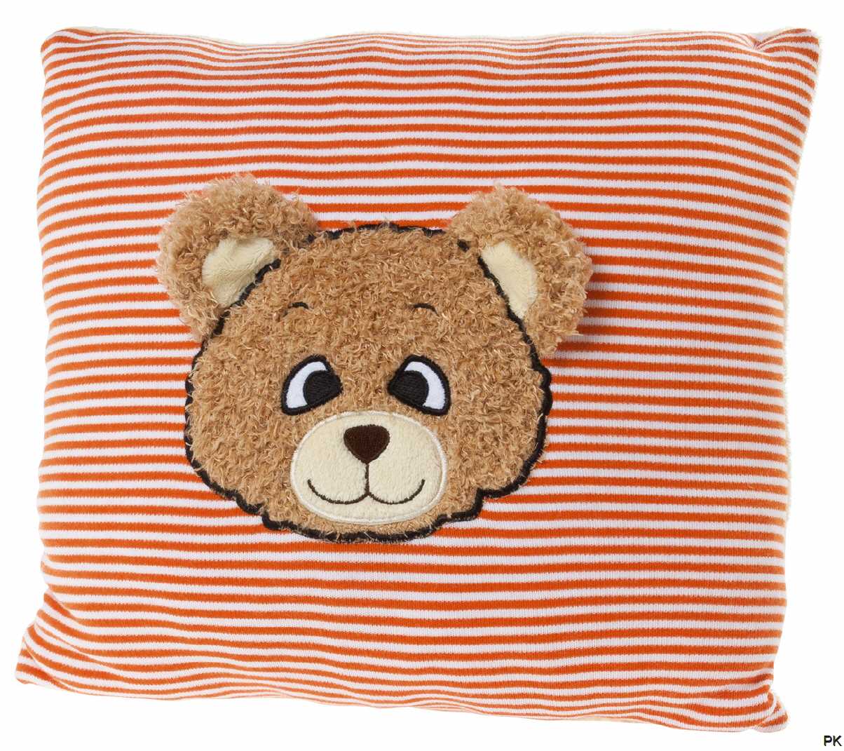mit aufappliziertem Teddybaerenkopf und kuschelweicher Füllung.