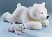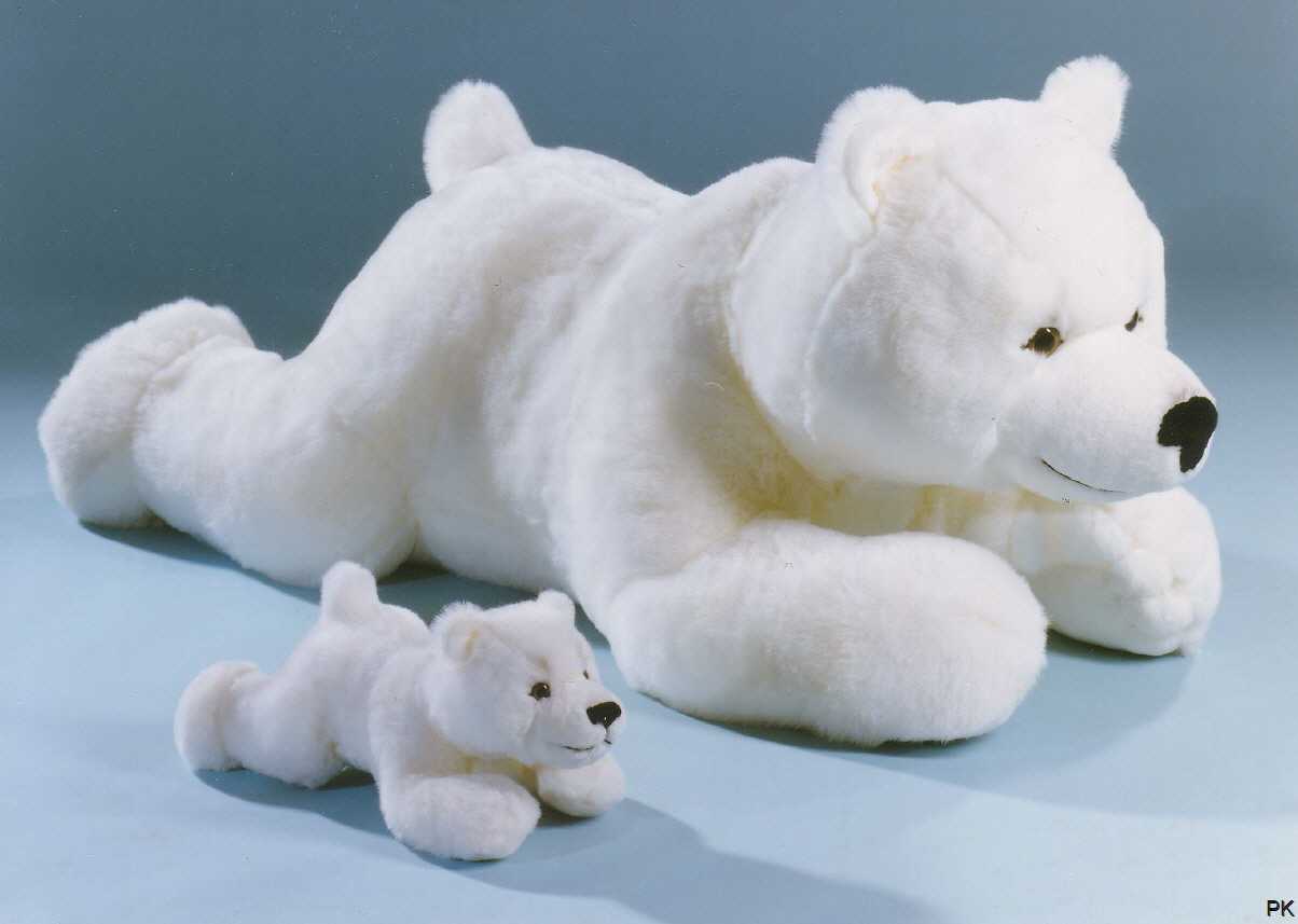 Kleiner liegender Eisbär (45 cm groß) oder großer liegender Eisbär (140 cm groß).