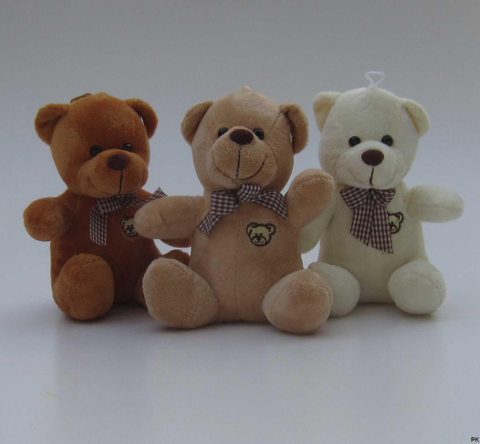 Der Teddybär ist aus kuschelig weichem Plüsch-Material und kuschelweicher Füllung gerfertigt. Der Teddybär trägt eine karierte Schleife um den Hals und hat an der Brust eine Bestickung mit einem Teddybärenkopf.