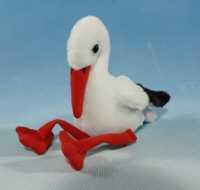 Plüschstorch, schlenkernd mit schwarzem Knopfauge.