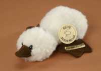 Plüschtier Gans aus reiner Schurwolle, Schurwollfüllung sowie braunem Filz an Schnabel und Füßen.
