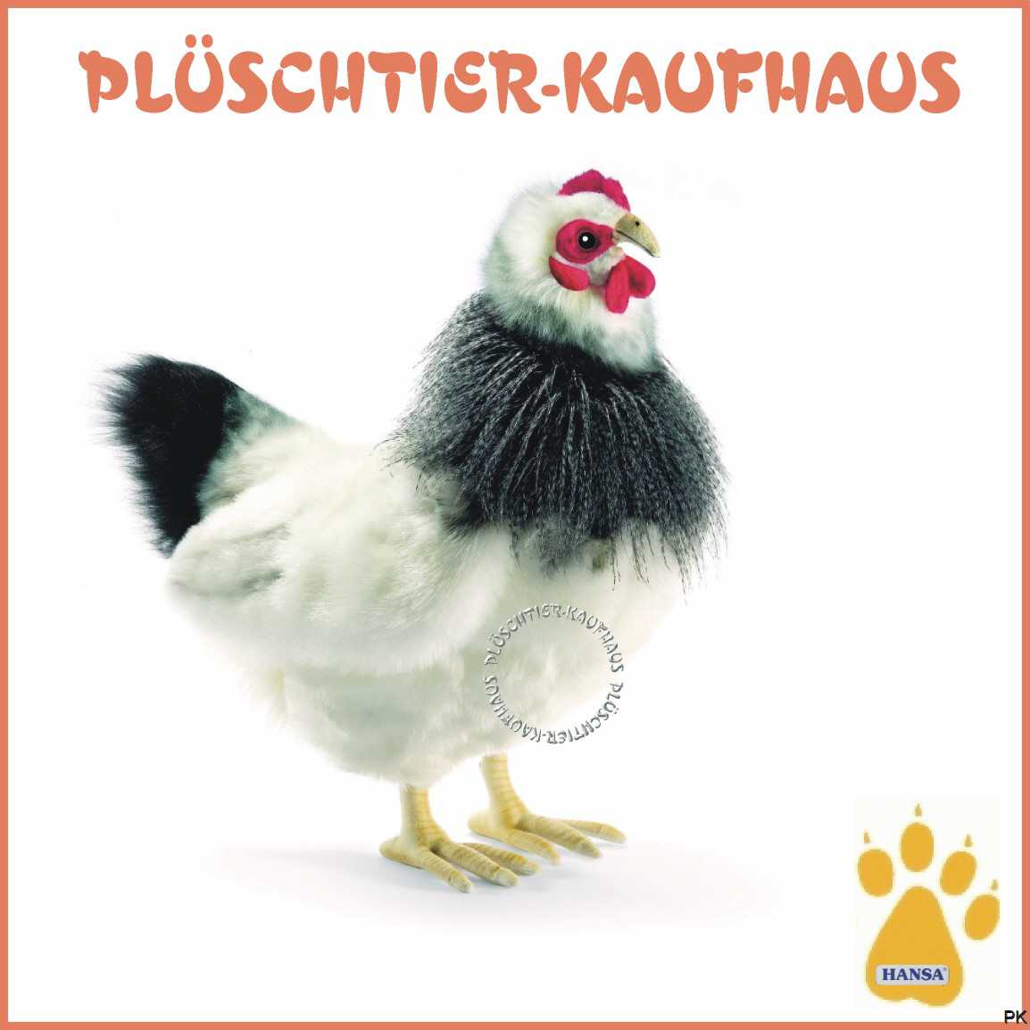 Stolzes Plüsch Huhn mit schwarz-weißem Federkleid,
