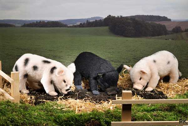 Die Plüsch Schweinchen sind je 30 cm groß.