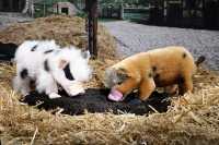 Die Plüsch Schweinchen sind je 30 cm groß.