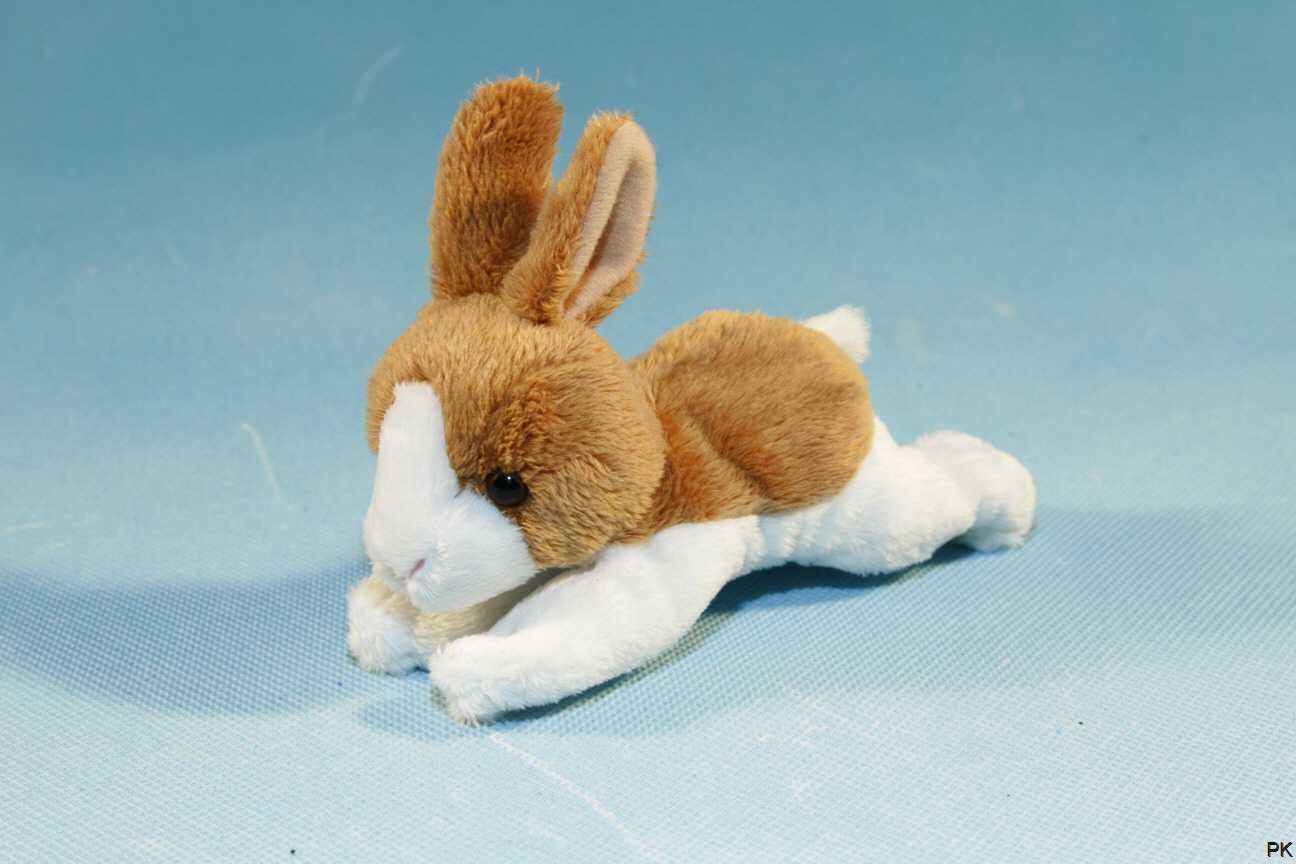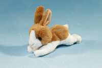 Das Stofftier Hase ist aus hochwertig verarbeitetem, kurzflorigem Material in braun und weiß gefertigt.