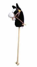 Plüsch Steckenpferd mit schwarzem Kopf, weißer Mähne, weißer Stirn und weißer Schnauze.