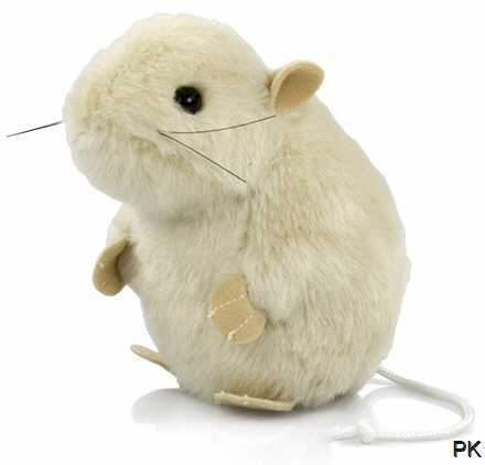 Das Stofftier Maus ist beige gefärbt, die Gliedmaßen, und Ohren sind hellbraun gefärbt.