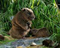 Der Biber ist wie abgebildet in den zwei Varianten "sitzend" (34 cm groß) und "liegend" (26 cm groß) lieferbar.