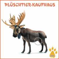 Großer Plüsch Elch mit kurzem, massivem Rumpf und verhältnismäßig langen Beinen,