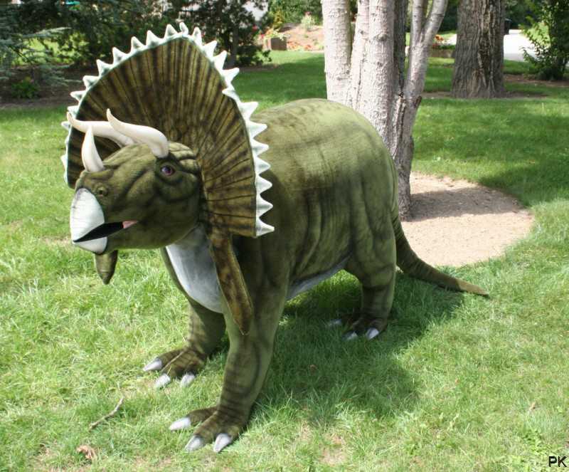 Stoff Triceratops in stehender Position: die breiten Füße verleihen ihm Standfestigkeit.