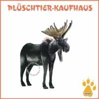 Großer Plüsch Elch mit kurzem, massivem Rumpf und verhältnismäßig langen Beinen,