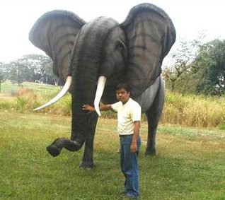 unser Hersteller stellte uns daher ein Foto für den Größenvergleich eines Mannes mit dem Plüsch-Elefanten zur Verfügung!
