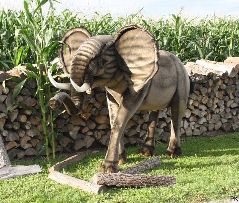 sowie an seinem langen Rüssel Querrunzeln - wie bei einem echten afrikanischen Elefanten.