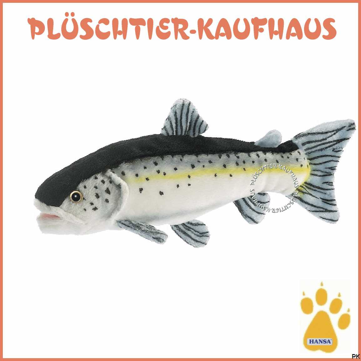 Plüsch Forelle mit seitlich flachem, spindelförmigem Körper.