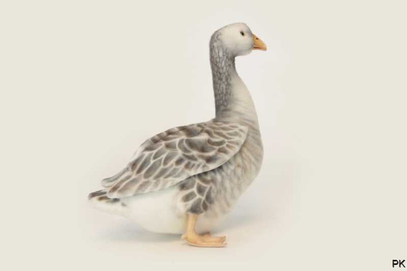 Plüschtier Gans mit grauem Gefieder, die Bauchunterseite ist weißlich gefärbt.