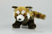 Der Körper des Stofftiers roter Panda ist rotbraun, die Bauchunterseite und die Gliedmaßen sind dunkelbraun gefärbt. Das Gesicht des Kuscheltiers roter Panda ist ebenfalls rotbraun gefärbt, der Nasenbereich, Wangenbereich und die Innenohren sind weiß.