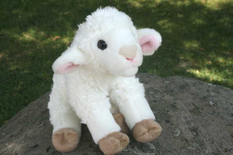 Plüschtier Lamm mit weicher, weißer Wolle.