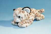 Plüschtier Schneeleopard in liegender Position.