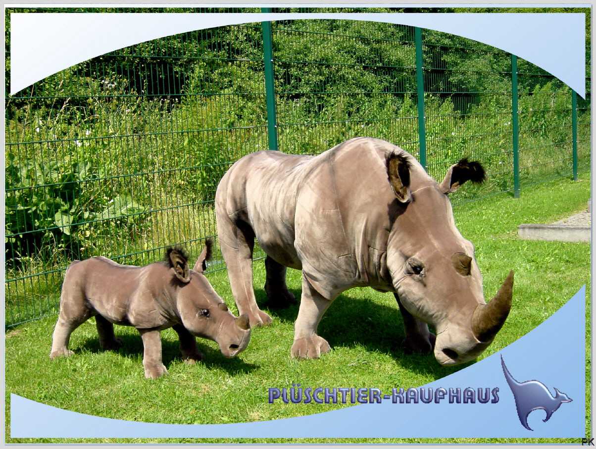 Das Nashorn ist wie abgebildet in verschiedenen Größen (100 oder 200 cm groß) lieferbar.