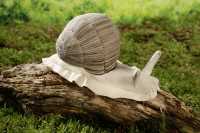 Der Körper der Plüsch Schnecke ist originalgetreu in Kopf, Fuß und Mantel gegliedert. Das Gehäuse der Plüsch Schnecke hat einen Durchmesser von ca. 5 cm, ist bräunlich gefärbt und hat ein gestreiftes Muster. Der Körper der Pluesch Schnecke ist ca. 19 cm lang, weißlich gefärbt und aus sehr glattem Material hergestellt.