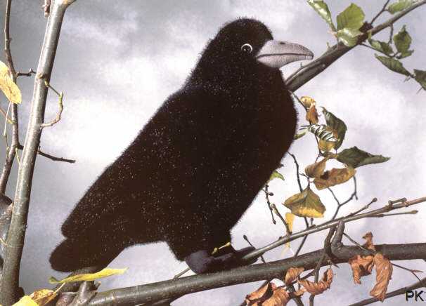 Plüschtier Krähe mit grauem, geschlossenem, zuspitzem Schnabel.