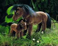 Das Pferd ist wie abgebildet in den zwei Varianten "Reitpferd" (38 cm groß) und "Fohlen" (24 cm groß) lieferbar.