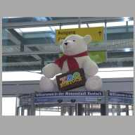 Eisbär XXL (1,80 m groß) Stofftier Werbemittel angefertigt im Auftrag für den Zoo Rostock, ausgestellt am Flughafen Rostock-Laage |