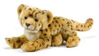 Plüsch Gepard mit gelblicher Fellfärbung, die Bauchseite ist weiß.